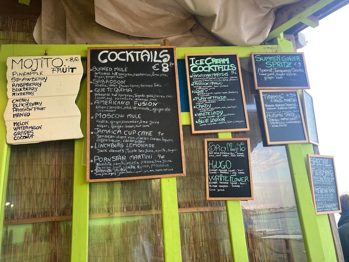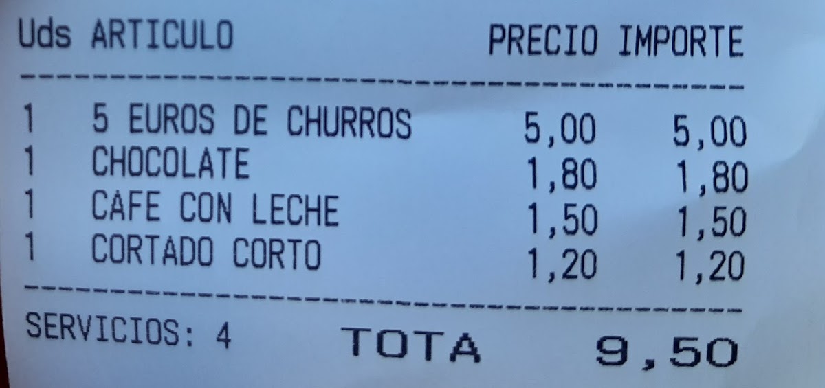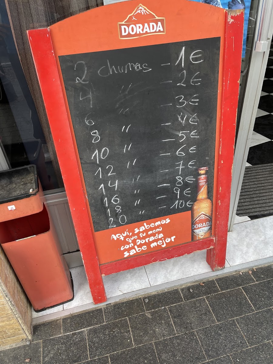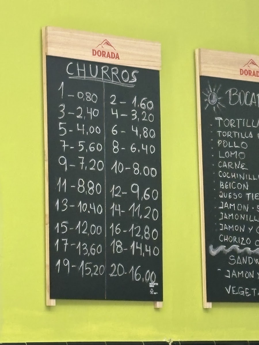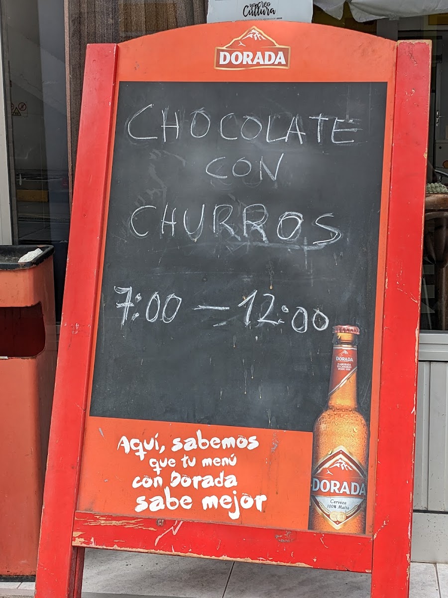 Food items include light meals and local dishes such as octopus salad and daily fish fillet options. The menu is well suited for breakfast and coffee breaks, with churros typically served during morning hours until midday.